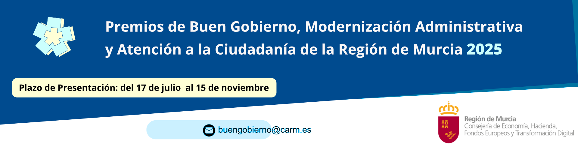 La Consejería de Economía, Hacienda, Fondos Europeos y Transformación Digital convoca la II Edición de los Premios de Buen Gobierno, Modernización Administrativa y Atención a la Ciudadanía de la Región de Murcia, con el objetivo de visibilizar, distinguir y reconocer públicamente las buenas prácticas en estas materias.